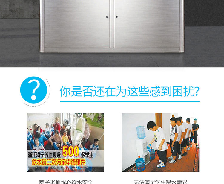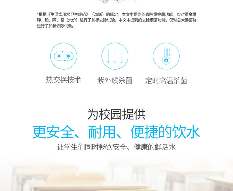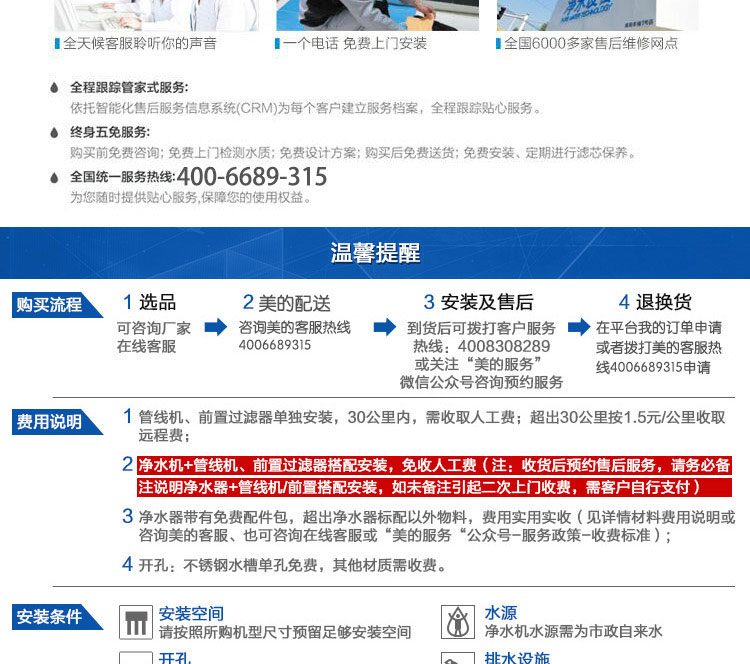 包裝清單"商用凈水機1臺; 使用說明書1本; 服務安裝單+客戶服務卡1份; 門鑰匙2把、調節支撐腳4個; 排水軟管1根; 4分波紋管1根; 排水管端蓋堵頭1個; 扎帶2根; 4分密封墊4個; 3角調溫鑰匙1把1 800G反滲透膜1支"